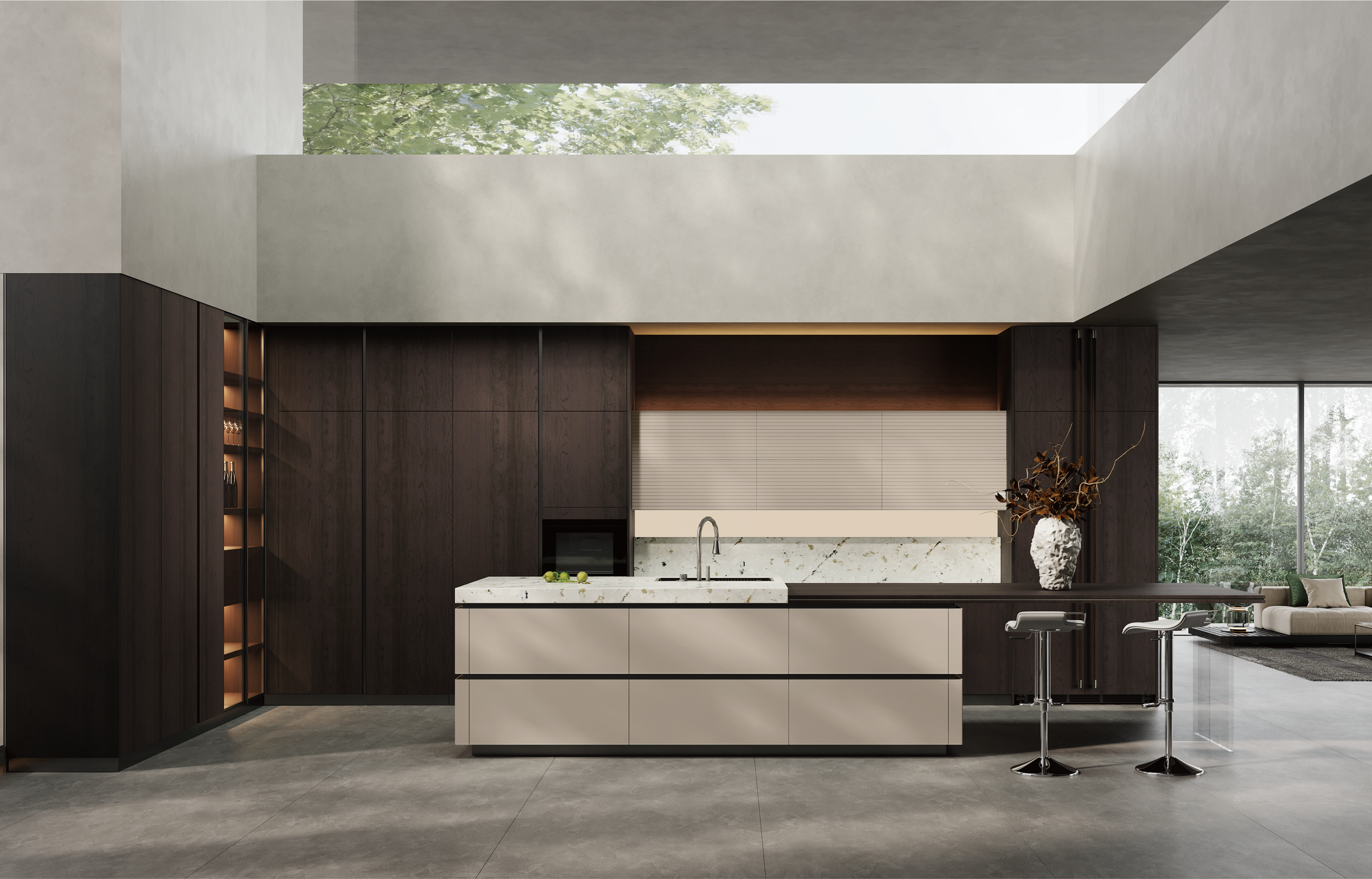 通过stake厨柜量体裁柜,定制出适合主厨下厨的烹饪区和洗涤区的舒适高度。
